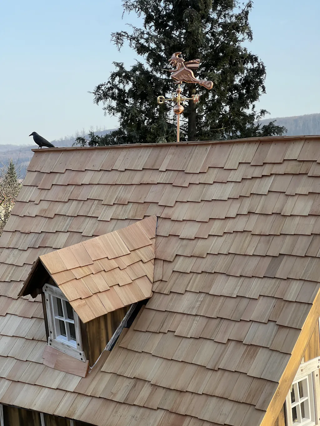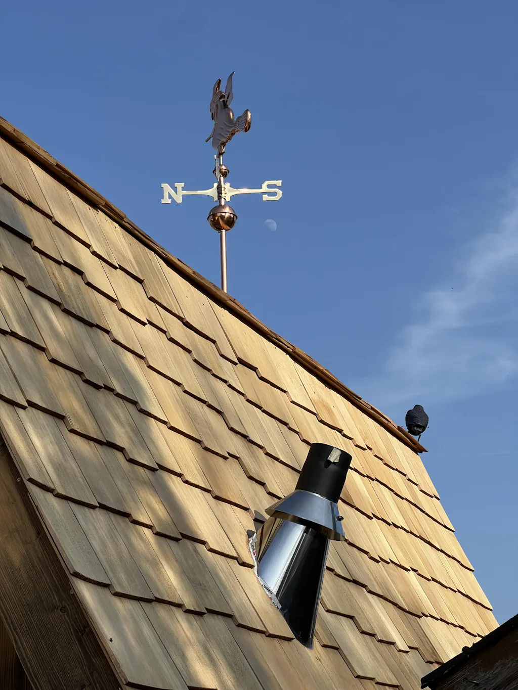 La girouette tourne toujours face au vent, elle n'offre donc aucune surface d'attaque et reste en sécurité et en bon état sur le toit.